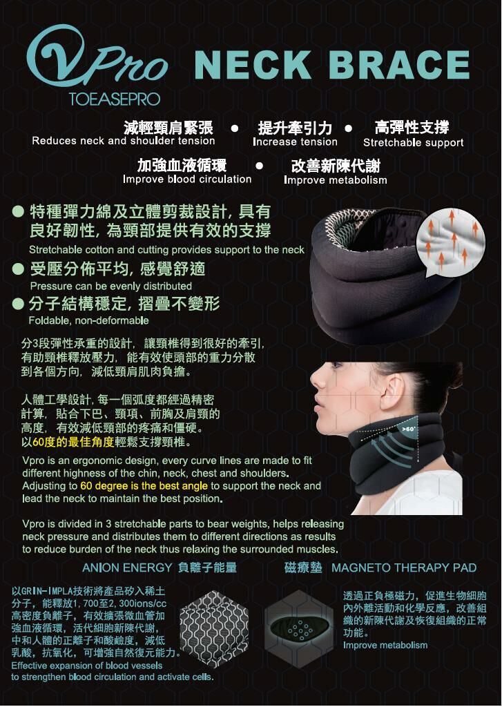 - 特種彈力綿加上特別立體剪裁, 有良好的韌性, 為頸部提供有效的支撐