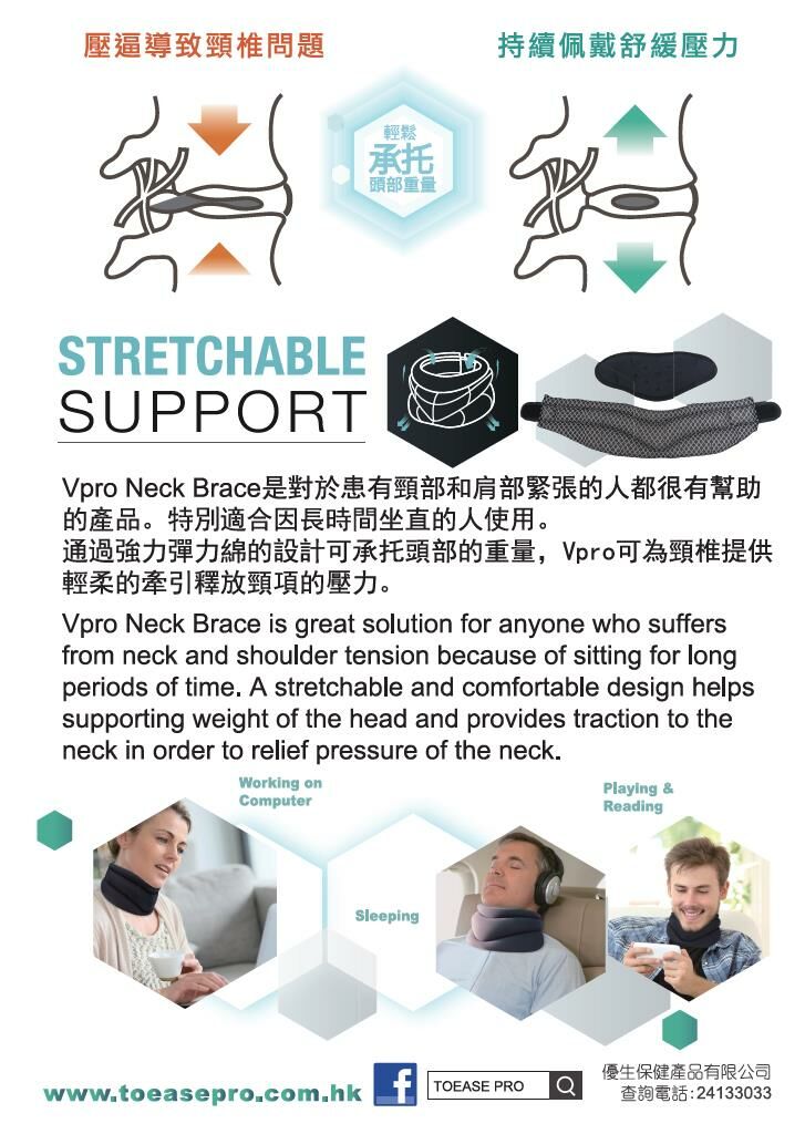 Reduces neck and shoulder tension減輕頸肩緊張